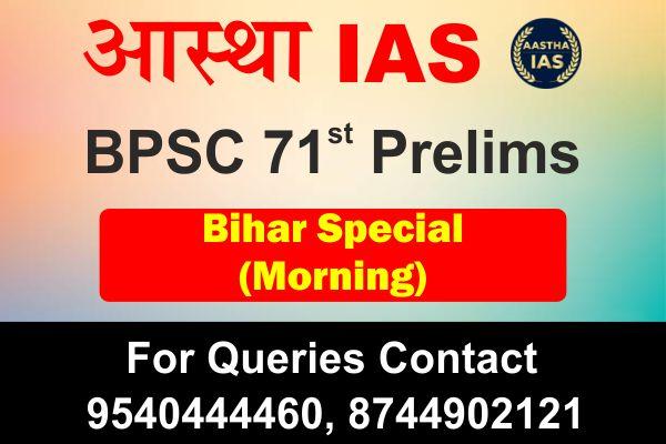 Aastha IAS offers a comprehensive course for the 71st BPSC Prelims, meticulously designed to equip aspirants with the essential knowledge and skills to excel in the Bihar Public Service Commission examination.